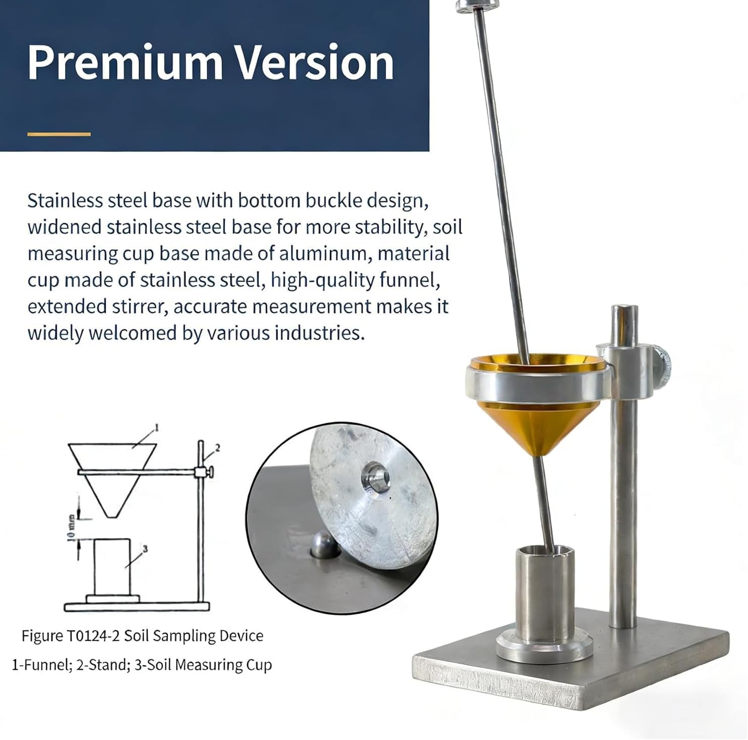 Product Parameters: Product Name: Soil Swelling Rate Tester Soil Measuring Cup: Capacity 10mL, Inner Diameter 20mm, Height 32.8mm Neckless Funnel: Upper Diameter 50~60mm, Lower Diameter 4~5mm The stirrer consists of a straight rod and a perforated circular plate; the circular plate should be slightly smaller than the diameter of the measuring cup. Applications: Primarily used to determine the volume swelling rate of cohesive soil during immersion and the moisture content after swelling stabilizes. Packaging List: Soil Swelling Rate Tester *1